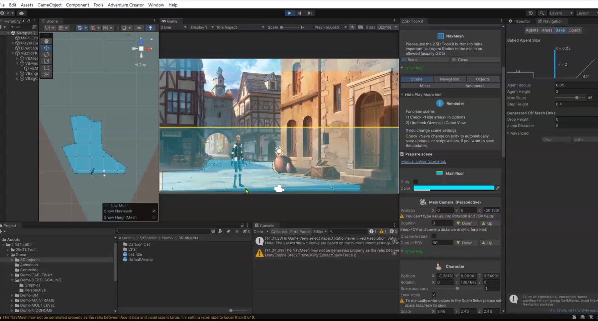 The video demonstrates the entire workflow: setting up Depth Scaling, exporting the scene, and importing it both into a full 2.5D Toolkit project and into an AC-based project.