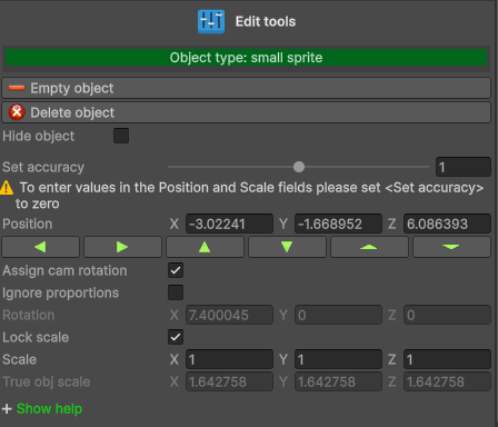 After placing the object, refine its position using the buttons together with Set Accuracy.